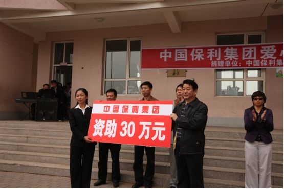 2000年,集團(tuán)公司為響應(yīng)北京市青少年發(fā)展基金會(huì)、內(nèi)蒙古青少年發(fā)展基金會(huì)、希望工程北京捐助中心捐資助學(xué)的號(hào)召,在內(nèi)蒙古捐建了一所希望小學(xué)。集團(tuán)公司全體員工持續(xù)十多年為保利希望小學(xué)捐款捐物,總計(jì)達(dá)147萬(wàn)多元,先后為小學(xué)購(gòu)置了圖書(shū)、電腦、學(xué)生生活用品、校車(chē)、教學(xué)設(shè)備等。 2009年10月,由于學(xué)校原址地處煤礦采空區(qū),出現(xiàn)墻體斷裂,危及校舍安全,學(xué)校部分遷至納林陶亥鎮(zhèn)政府所在地,與新廟小學(xué)合并,并繼續(xù)冠名為“保利希望小學(xué)”。今年是第一次為合并后的保利希望小學(xué)捐款。