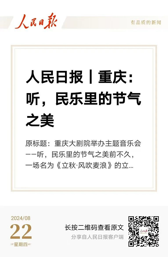 重慶大劇院舉辦主題音樂會(huì)——聽,民樂里的節(jié)氣之美