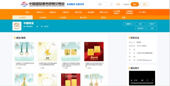 In the online exhibition hall on the CIFTIS digital platform, Sino Gem, under China National Arts and Crafts Group Co., Ltd. (CNACGC), launches more than 70 main products, including gold, platinum, diamond, and other varieties, showcasing the aesthetics of Chinese jewelry in multiple dimensions.