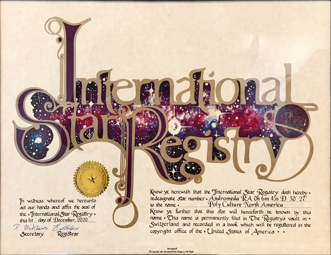 RCRG Named a Star After "Poly Culture North America" as A Gift