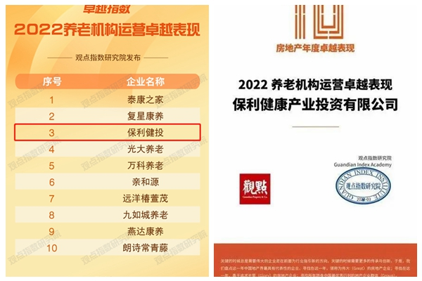 On April 12th, Guandian Annual Forum 2022 released the list of “2022 Excellent Operation of Elderly Care Institutions”. With excellent overall strength in providing elderly care and diversified industrial chain layout, Poly Health Industry Investment (Poly Health) was rated No.3 most excellent elderly care provider. Poly Health is a core platform under Poly Developments & Holdings with business focus in the heath sector. Such achievement came after Poly Health ranked second on the list of “Overall Strength of Health Care Industry Operators in China” by EH Consulting, and received honorary titles such as the “Youth Collective Award for Central Government-Owned Enterprises” for year 2019-2020 by the Youth League Working Committee for Central Government-Owned Enterprises and the “Advanced CPC Primary Organization” by the Party Committee of the State-owned Assets Supervision and Administration Commission of Guangdong Province in 2021.